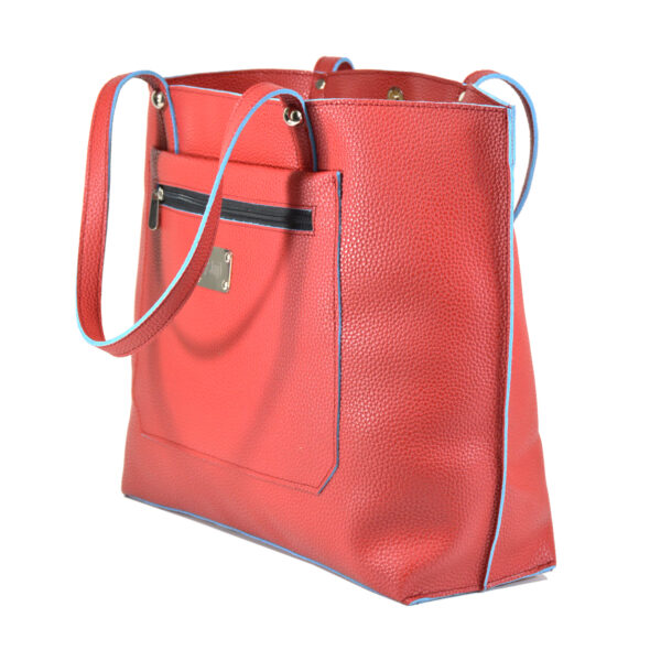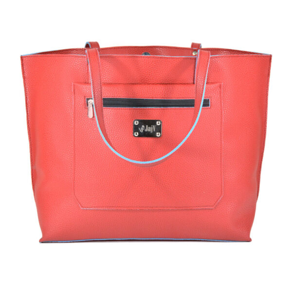 Featuring a sleek black zipper at the front, this tote bag secures your belongings while adding a touch of elegance. Whether you’re heading to work or out for a casual stroll, the red color ensures you stand out in any crowd.